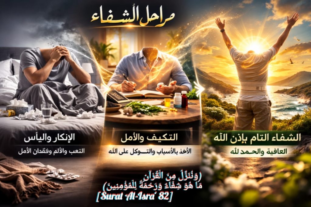 إن مراحل الشفاء تمثل رحلة متكاملة يبدأ فيها المريض من مرحلة الإنكار أو اليأس حتى يصل إلى التفاؤل والتعافي التام بإذن الله. كل شخص يمر بهذه المراحل بشكل مختلف، لكن هناك علامات شائعة نجدها عند أغلب المرضى، ويجب أن نتذكر دائمًا أن الشفاء نعمة من الله تأتي بعد صبر وسعي.