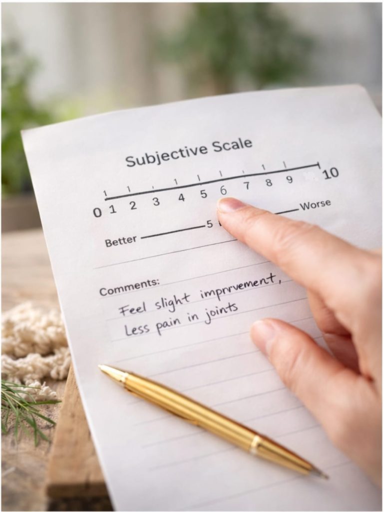 👈 كثير من الدراسات الطبية تطلب من المرضى ملء تقارير يومية بشعورهم، لأنها دليل على التحسّن حتى قبل أن يظهر في التحاليل!