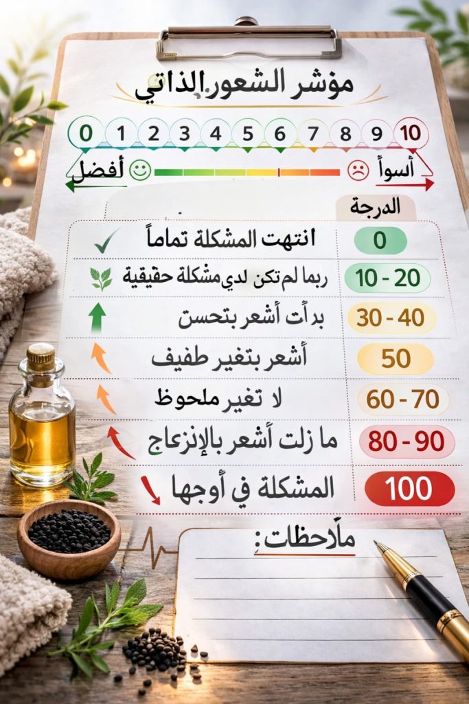 🕰️ سجّل حالتك بعد كل جلسة أو بعد كل جرعة علاجية، وراقب هذا المؤشر بصدق.